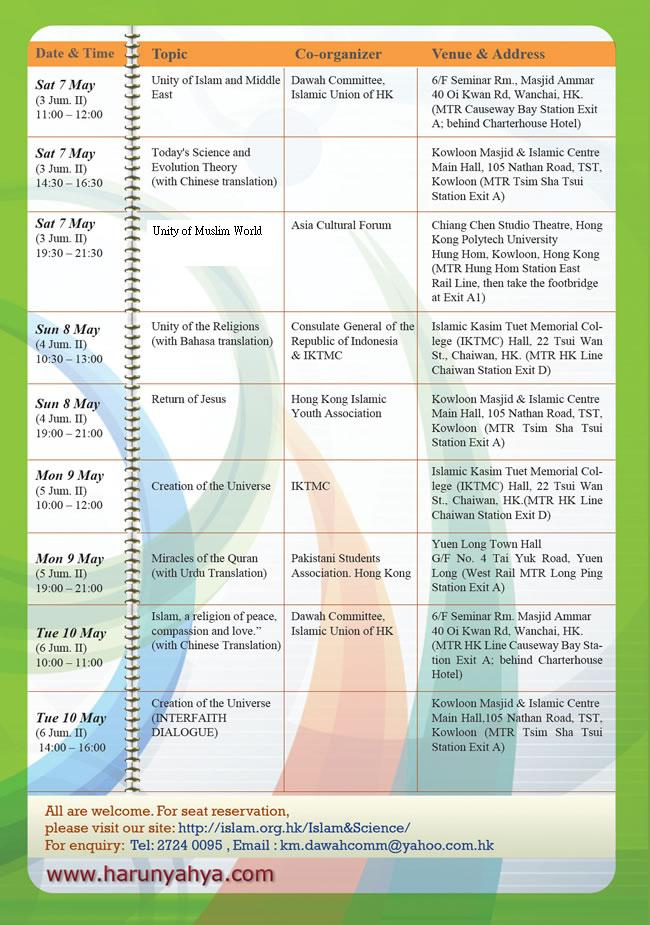 All are welcome. For seat reservation, please visit our site: http://islam.org.hk/Islam&Science/