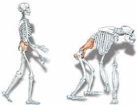 最近的研究顯示,適合四足行走、骨骼彎曲的猿,不可能進化成兩足行走、骨骼直立的人類。