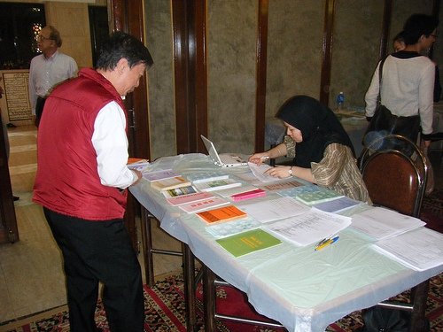 The program started around 10:30a.m.with posters exhibition and video show of “Wonders of Creation” by Harun Yahya and “Inside Makkah” by National Geographic. It seemed that quite a number of visitors were interested in the video of Harun Yahya. Thanks to the generous contribution of Br. Qammar Minhas and the co-ordination of Br. Muhammad Ajaz and Br. Sultan, a 12 feet motor driven screen and LCD projector had been installed recently in the community hall. This was the first time the newly installed equipments could be made use of. It proved to be remarkably clear and impressive. May Allah bless all those who contributed to make it materialized.