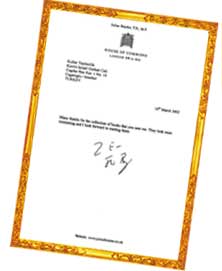 I write to acknowledge receipt of the four