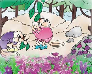 的哥哥告訴他,河狸設法攔截著水流以便建造牠們的房子。河狸的行為是令人驚訝的。他們用嘴巴咬著樹枝,把它們放在先前安置好在水中的最粗大的樹幹上。然後他們走上岸,並跑向最近的一棵樹。其中一隻河狸首先吃一些樹上的葉子,然後開始用牙啃咬著樹皮。牠繞著樹幹均勻地從各面咬著。牠不停地繼續這樣做,直到樹的缺口看起來像一支被削尖的鉛筆。