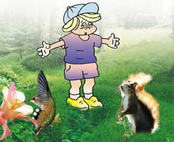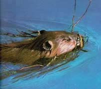 河狸先生:「卡里姆,所有河狸出生之後不久便能游泳。這對於我們是很容易的事,因為我們的身體的構造有利於游泳。一方面,我們的腳是有蹼的,以便我們容易撥水,另一方面,我們的尾巴是扁平的可充擔鰭狀肢的作用,以便我們能容易地在水中活動。正如您配戴保護鏡來保護您的眼睛,並幫助您在水中看東西,我們也有天然的保護鏡。並且我們的耳朵和鼻孔可以緊緊地關閉著不讓水進來。我們有每隻眼睛有三層眼皮。其中一層是半透明的,讓我們在水中能看東西,並可保護我們的眼睛在水中免受傷害。」