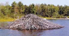 你一定會問自己:「這堆木材在水中用來做什麼?」這圖畫展示河狸的家,它是建在水面上的。
