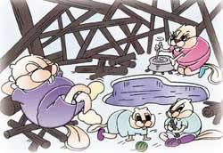 這些可愛的河狸所執行的工作,令卡里姆感到驚歎。現在他的問題被解答了,他要回到營地去,把從河狸那裏學會了的一切告訴大家。 |
