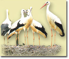 之間,有白色的大翼。牠們紅色的鳥喙和長腿十分逗人喜愛。每年,鸛群都要遷徙,因為牠們不能居住在寒冷的地區。鸛因而告訴我們,炎熱的天夏快要來臨了。牠們能知道何時天氣要回暖是一項奇蹟。下一年,當春天要再來臨的時候,鸛就會長途跋涉地回歸到牠們千里迢迢的老家。當然,這是安拉賜與牠們這樣好的記憶力和方向感所致。 |