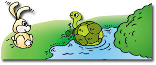 他嘲笑野兔的行為並從草龜身上學會了運用腦筋是多麼重要,運用智慧比體力上的較量在比賽中更能佔盡優勢。當他正在思考有關這些事情時,他突然意識到,草龜從書本上活躍起來,並開始與他談話: