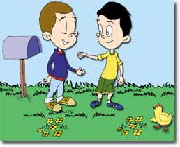 那天黃昏的時候,他倆與家人商量,說服了他們在週末一起到郊外旅行。在途中,他們互相考問對方有關將會見到的動物的問題。一下車後,他們便興奮得在樹間跑來跑去。他們的家人坐在長凳上閒談。Bilal