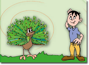 對於安拉偉大的創造才能,Naeem感到簡直是奇蹟。他走去與媽媽和妹妹會合。他提醒了他們,是安拉創造了孔雀的美麗。 |