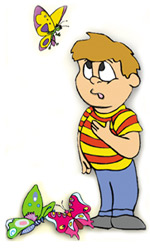 蝴蝶深深地吸了一口氣說。我們蝴蝶從卵孵化成細小的幼蟲。我們以啃葉子來餵養自己。之後,我們使用從我們體內分泌的絲狀液體,來包裹著自己。我們所編織成的包裏叫做繭。我們逗留在這個包裏一段時間,繼續生長。當我們醒來後,破繭而出,我們已長成色彩繽紛的翅膀了。我們以後的生活,便靠在花叢間飛來飛去,找尋食物了。」