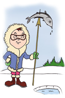 我們非常聰明地用我們白色的前爪來蓋著我們的鼻子。那樣我們便掩藏了鼻子的顏色。我們便能在雪地上完全隱蔽地等待獵物走近我們。」