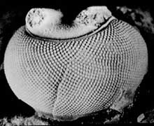 這些生物突然出現在寒武紀期間。在牠們之前,沒有其他的生物,活在這個行星上。這些不是來自任何地方的生物,突然出現了,是安拉在一瞬間創造了牠們的證明。如果進化論主義者所提出的理論是對的,那麼,這些生物一定是從更加簡單的祖先,逐漸演變而成的。但是,這些生物並沒有比牠們原始的祖先,也沒有過渡的形式存在。沒有古生物學家,曾經發現到,這樣一個過渡形式的化石。化石告訴了我們,這些生物好像所有的其他生物,是突然出現在寒武紀期間的,牠們沒有缺少任何特性,並且牠們是沒有從任何祖先進化而來的。那是安拉創造了牠們。此外,這些生活在寒武紀期間的生物,牠們有特殊的性能。例如,那裡常有一種生物,稱為三葉蟲,居住在寒武紀期間,但我們現在看不見牠們,因為牠們已經絕種。三葉蟲有非常複雜但完善的眼睛。牠的眼睛,如同您能看見在右邊的圖中,是由數以百計的蜂窩形狀的細胞組成的,這些細胞使牠們看得非常清楚。
