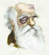 右圖是達爾文的卡通畫像,他是進化論的始創者。這卡通表明,進化論已經崩潰了。進化論在我們的這個時代,就像在卡通裏的達爾文一樣,受到迎頭重擊。