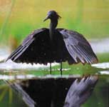 蒼鷺的捕魚時顯示了驚人的技巧。牠站立起來,把翅膀豎起在牠的頭頂上,並把翅膀伸開像傘的形狀。產生一個陰影在水面上,這個陰影能防止水面發生反射作用。這樣,蒼鷺便能清楚地看見水中的獵物。蒼鷺的翅膀在水的表面形成一個圓形的陰影,牠就在這個圈子內捉魚。