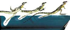 英哩)。牠們伸展開牠們的鰭,並把尾巴伸出水面,便能在水面較快地移動了。牠們就這樣快速地在水面滑行。
