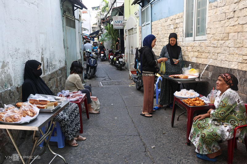 愛薩爾(上圖右一)現年52歲,她5年前從河內遷徙到這個穆斯林社區。安頓好家事之後,她選擇自力更生,在街邊售賣自製占族穆斯林特色美食。