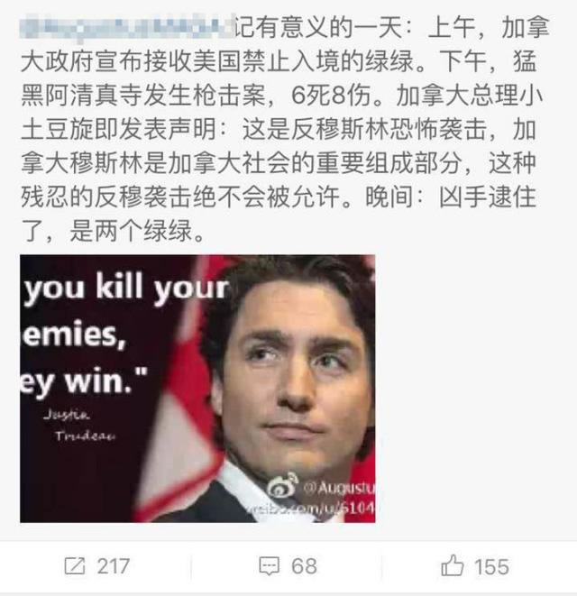 加拿大魁北克槍擊案6死17傷震驚全球,隨後,“兇手高呼真主真偉大”“魁北克穆斯林自相殘殺”的傳言沸沸揚揚。特朗普的新聞發言人也以此正當化難民禁令,但警方最新調查結果顯示兇手為極右國家主義法裔加拿大白人。