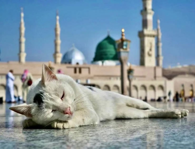 在麥迪那聖寺廣場睡覺的貓