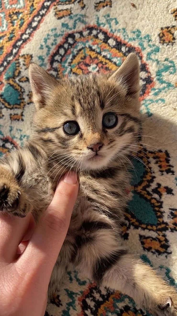 在禮拜毯嬉鬧的小貓