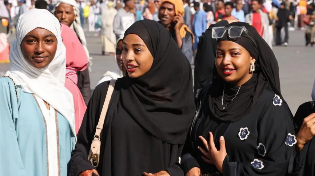 埃塞俄比亞首都阿迪斯阿貝巴,參加古爾邦節會禮的穆斯林女孩