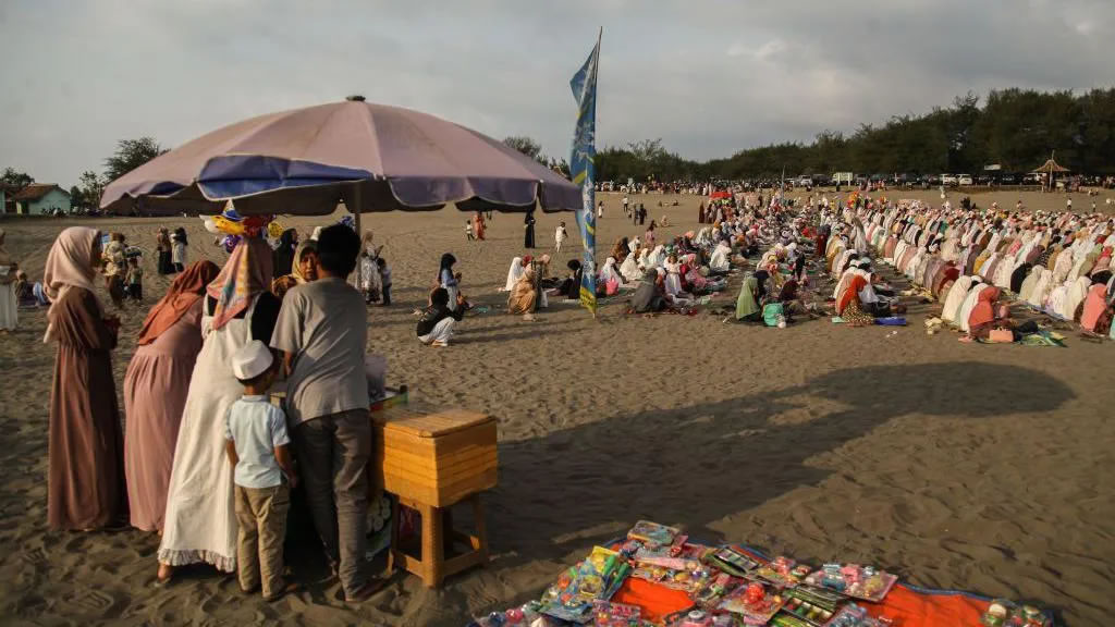 印尼日惹,當地穆斯林海灘上參加古爾邦節會禮