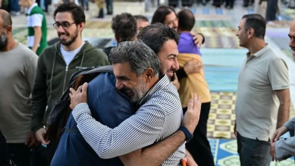 土耳其首都伊斯坦布爾,穆斯林在晨禮後擁抱歡慶古爾邦節