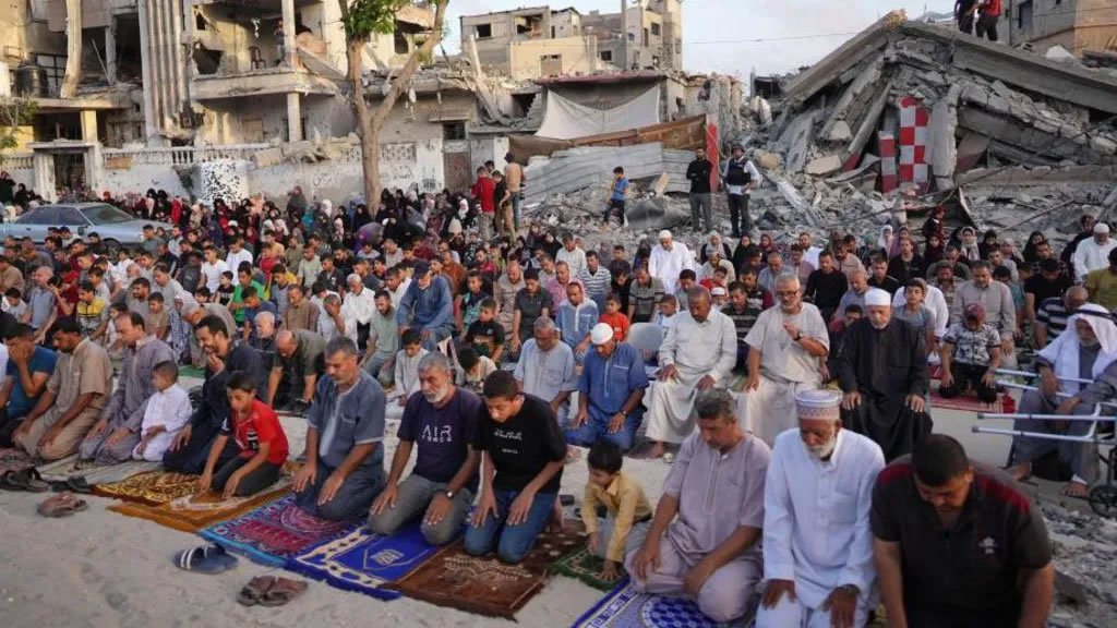加沙汗尤尼斯,穆斯林在廢墟中完成古爾邦節會禮