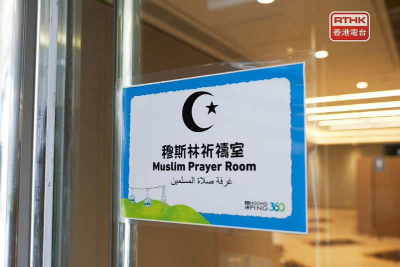 昂坪市集(大佛景區旁)則為男女分設祈禱室,配備禮拜毯、古蘭經和禮拜方向標識,還提供適合女性的祈禱服飾。