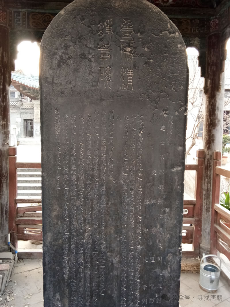 穿過省心閣便是二進院,院內兩側有水池、假山、花壇相對稱,南北廳各有五間,北廳外立柱上掛楹聯:“巨蟒道安,羸駝轉健;熟羊告毒,烹鯉言機。”是清末曾任都察院山東道監察禦史的陝西書畫大家宋伯魯所題。南廳外立柱上掛楹聯:“泥丸毓秀,儲天庭不減燈籠;水點鐘虛,現世界無窮色相。”為同治年狀元、時任督察院左都禦史、後任工部尚書、吏部尚書的陸潤癢題。院內南北兩邊還有碑亭兩座,裡邊矗立的兩塊碑都非常珍貴。兩個碑亭旁的南北兩側,分別還各矗立著一座碑樓,兩個碑樓旁分別豎立有古碑各兩通,碑亭內外的這八塊古碑皆與該寺的歷史有關。