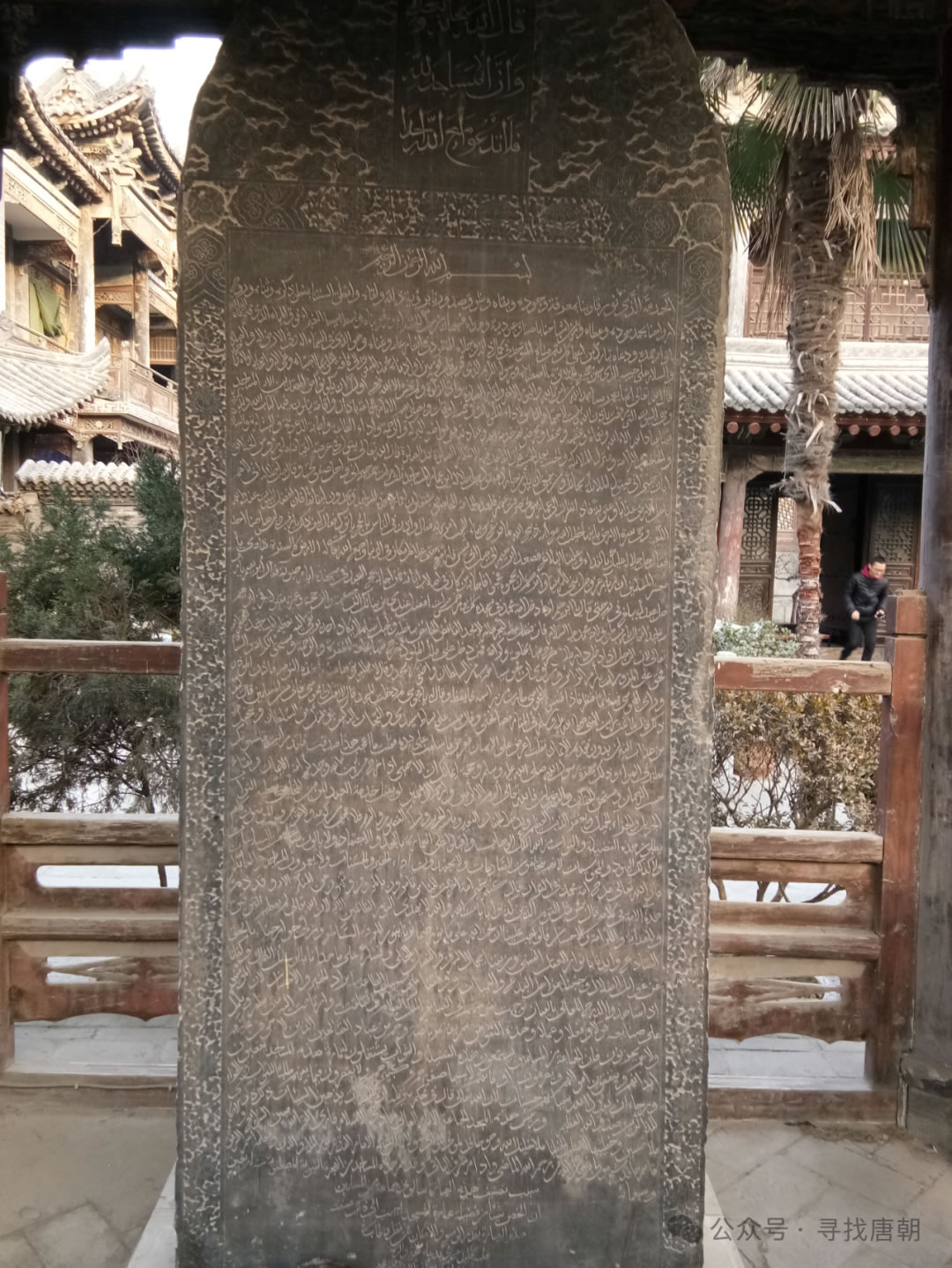 此阿拉伯文碑以回族教內傳統行文程式,先贊主贊聖,再贊清真寺之貴,贊禮拜之貴,贊修造清真寺之善舉。此碑書法俊美,行文流暢,內容清晰可辨。碑額上刻有阿拉伯文的一段《古蘭經》,碑頭下面刻滿了密密麻麻的阿拉伯文,整篇文字沒有標點,不分段落。通覽阿拉伯文碑記內容,很像是一篇阿訇們擅長的“臥爾茲”(演講),辭藻優美,讀起來朗朗上口,讓人不得不欽佩前輩先賢經學功底之深厚。碑文的結束部分提到了宣導修建該清真寺的發起者的身份和名字:該寺的伊瑪目(教長)滿喇侯賽因和海推布(演講者)海里倫·拉;結尾還注明了該寺修繕完工的時間“伊斯蘭曆740年”,即西元1339年,此時正是元惠宗至元五年。還用小經拼出了撰寫者的名字金善福(音譯)。由此可見,該寺修繕前的規模還是比較大的,至少寺裡同時有三位阿訇:侯賽因、海裡倫·拉和金善福(音譯)。學術界公認,此碑價值很高,至少有兩個全國之最:一是這通元代的阿拉伯文碑是操漢語的中國穆斯林(回族)用阿拉伯文撰寫的最早的石碑(早于著名的河北定州至正八年碑9年)。二是碑文後的小經署名是目前全國現存最早的小經實物。