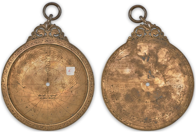 天文儀器(如星盤、測量儀)上重要測量部件測角器(alidade)的附屬元件。彼時,歐洲的科學之光早已熄滅,而在阿拉伯和穆斯林世界的廣闊土地上,科學之火依然熊熊燃燒。