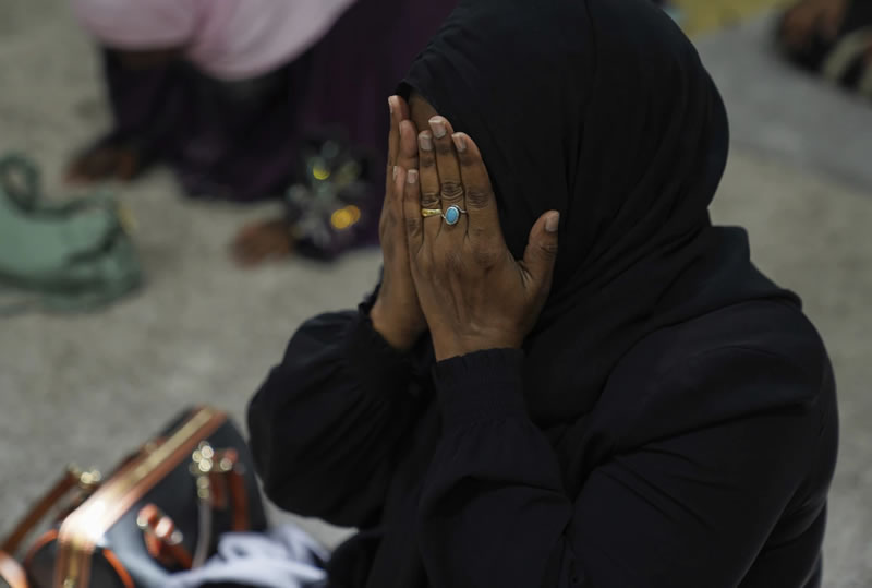 一名女子在锡达拉皮兹伊斯兰中心礼拜