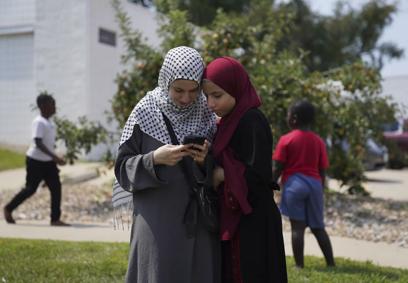两名小女孩在周五礼拜后在锡达拉皮兹伊斯兰中心外