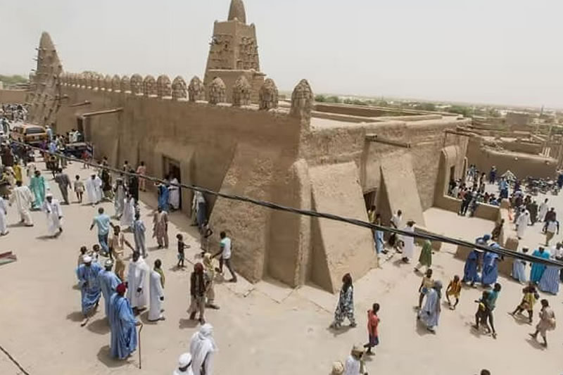 据道格·克卢阿特雷(Doug Clouatre)记载,廷巴克图在世界范围内声名鹊起,是在加纳帝国衰落、马里帝国兴起之后。它的崛起与马里帝国君主曼萨·穆萨(Mansa Musa)皈依伊斯兰教密不可分,穆萨在皈依伊斯兰后前往麦加朝觐,并在途中访问埃及,邀请埃及学者与他随行。此次朝觐之旅令他备受启发,返回故土后便修建了宏伟的金盖雷贝尔清真寺,此举也被后人视为他“最持久、最具意义的成就”。