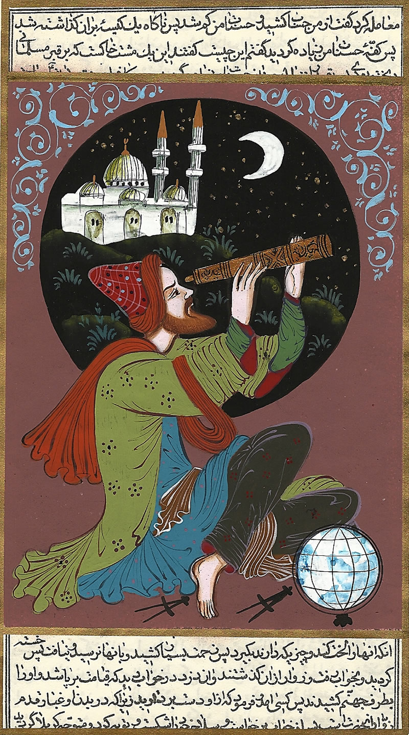 手繪圖像,描繪一位伊斯蘭文明黃金時代的天文學家