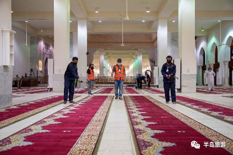 1.尼姆拉清真寺( مسجد نمرة )已清洗並維護了空調和通風系統,按照防疫措施要求迎接朝覲者做好準備。