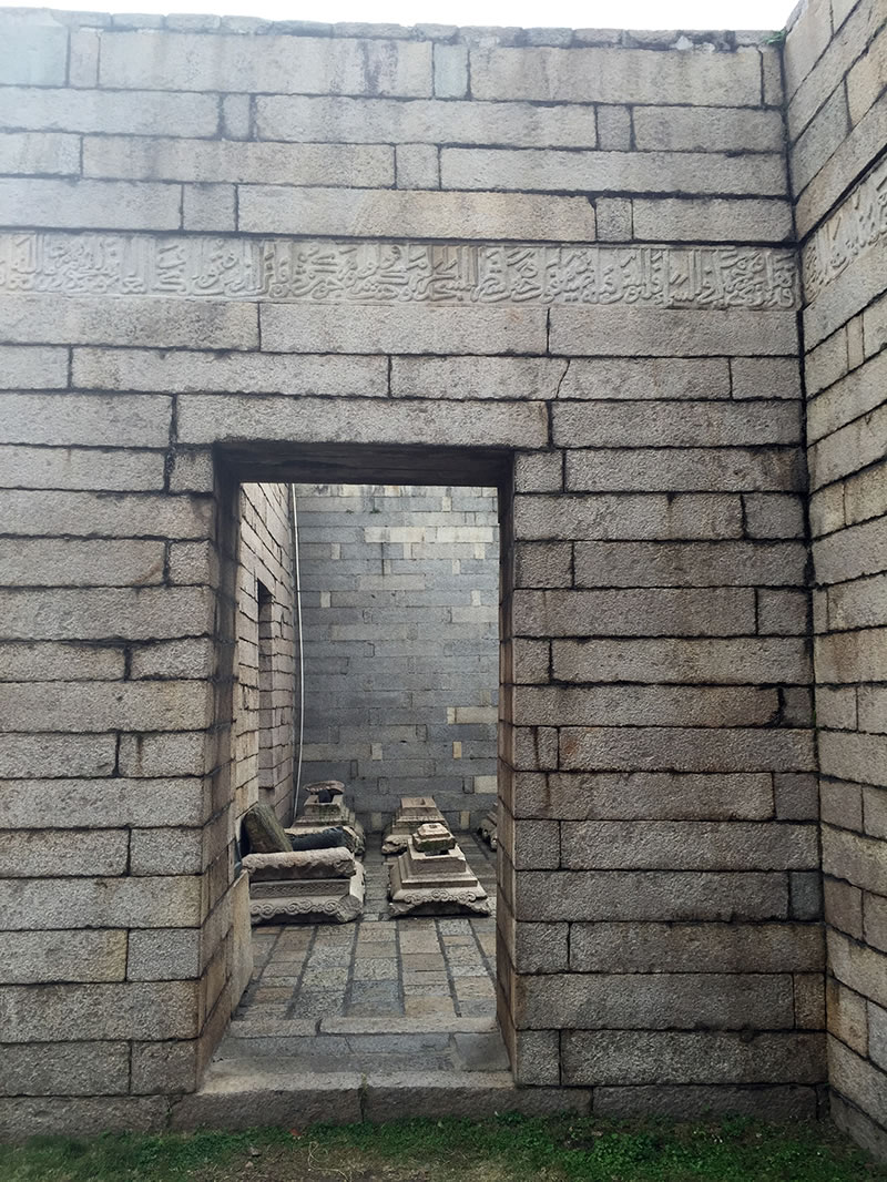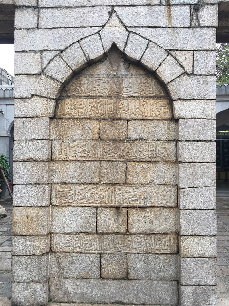 門樓後牆上兩行阿拉伯文石刻,則記載著清淨寺的創建年代重修時間以及最早的名稱。