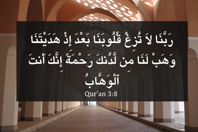 “我們的主啊!在你引導我們之後,求你不要使我們的心背離正道,求你把你的恩惠賜予我們,你確是博施的。”《古蘭經》 3:8