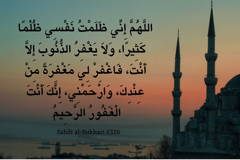 翻譯: “真主啊!我確已虧負了自己,虧負甚重,而除你之外無人能赦免罪過。請你從你那裡賜予我寬恕,並憐憫我吧,的確,你是至赦的,至慈的。” 《布哈裡聖訓集》
