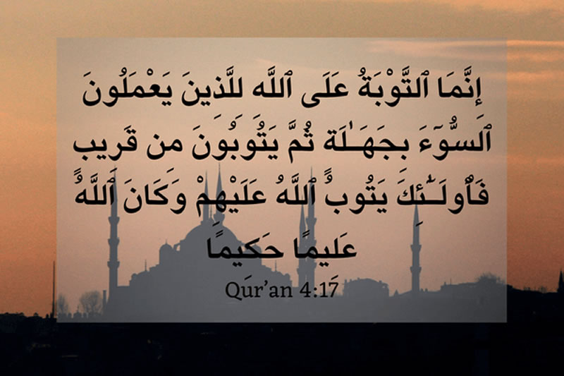 “安拉只赦宥無知而作惡,然後立即悔罪的人;這等人,安拉將赦宥他們。安拉是全知的,至睿的。”【4:17】