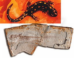 1.25億年歷史的火蜥蜴化石和當代的火蜥蜴 |