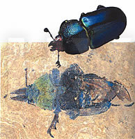 使進化論無效的主要發現之一就是化石記錄,化石記錄顯示了幾千萬年以來生物的構造一直未發生變化。如圖所示爲生活在我們當代的一種昆蟲以及這種昆蟲5,000萬年歷史的化石。 這種生物在5,000萬年後仍然沒有發生改變,這駁斥了進化論。 |