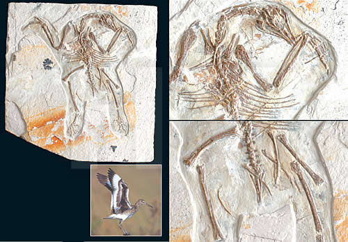 在中國發現的各種鳥類化石都證明了:鳥類一直是鳥類,它們不是從其他生物進化而來的。進化論者認爲鳥類是從爬行類進化來的,但是他們找不到證據。過去150年間採集到的化石標本證明進化論者的觀點毫無根據,圖中這件1.4億年的鳥類化石再次證明了這一點。 |