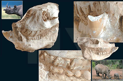 犀牛屬於犀科,一般生活在非洲和亞洲,它們在百萬年間都沒有任何變化。圖中2000萬年前的犀牛頭骨表明犀牛在百萬年間一直保持相同的結構。
