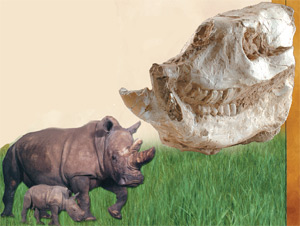 一塊具有2000萬年曆史的犀牛頭骨化石 |