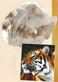 一塊具有2000萬年曆史的老虎頭骨化石 |