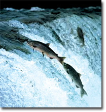 生活在太平洋的鮭魚有返回它們曾孵化過後代的河流的特性。這些在海洋中度過部分生活的動物,爲了繁殖又回到淡水中。