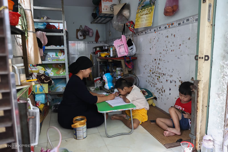 薩凱娜今年32歲,過去十年間,她和孩子們同父母居住在第八區,整個大家庭依靠她的食品攤過活,照片中的她正在教導孩子學習占族語言。