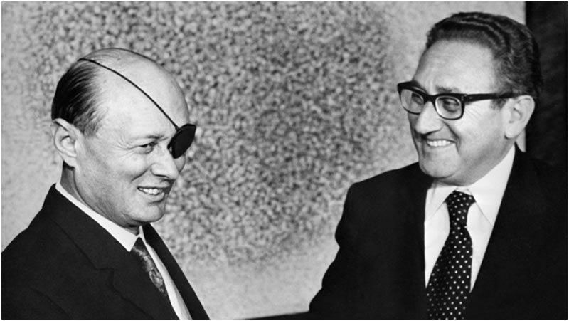 1973年,時任美國國務卿基辛格在特拉維夫會見以色列國防部長摩西•達揚
