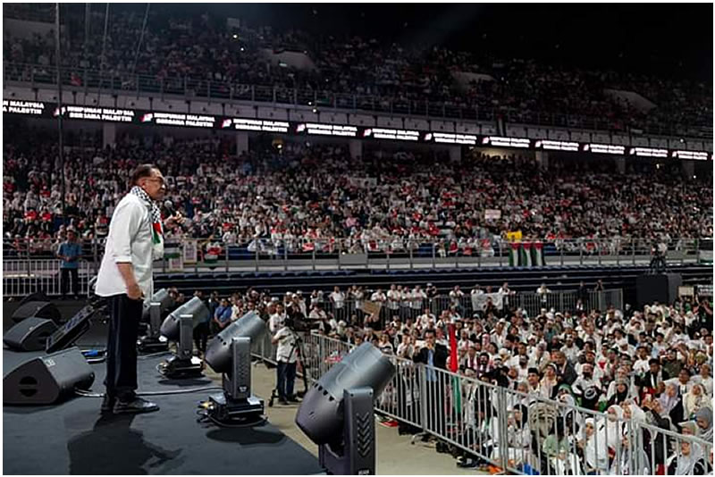 首相安瓦爾言辭譴責了西方政權無視公平與正義、無視以色列政府種種反人類罪行、無條件支持以色列政府的不義之舉。他指出,以色列軍隊空襲加沙地區醫院、學校等場所,造成無數平民死亡,屬於前無古人後無來者的野蠻行為。