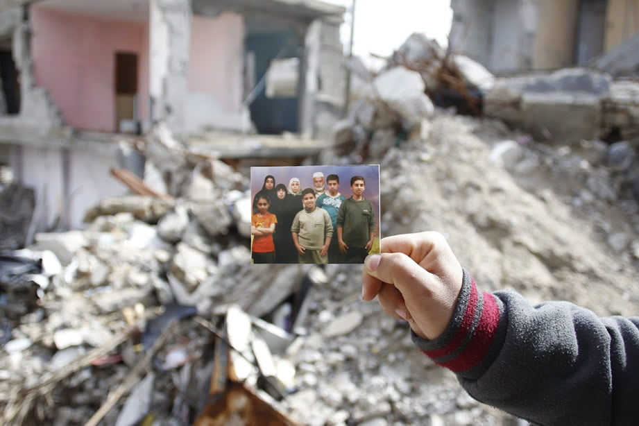 “我不知道導彈丟在了哪裡,空氣中煙塵彌漫,人們尖叫著。我又走近點,還是不知道炸在了哪裡。然後聽到有人在街上邊跑邊喊:‘他們炸了el Haj家。’一分鐘後,我才意識到我家被炸了,家人都埋在廢墟裡。